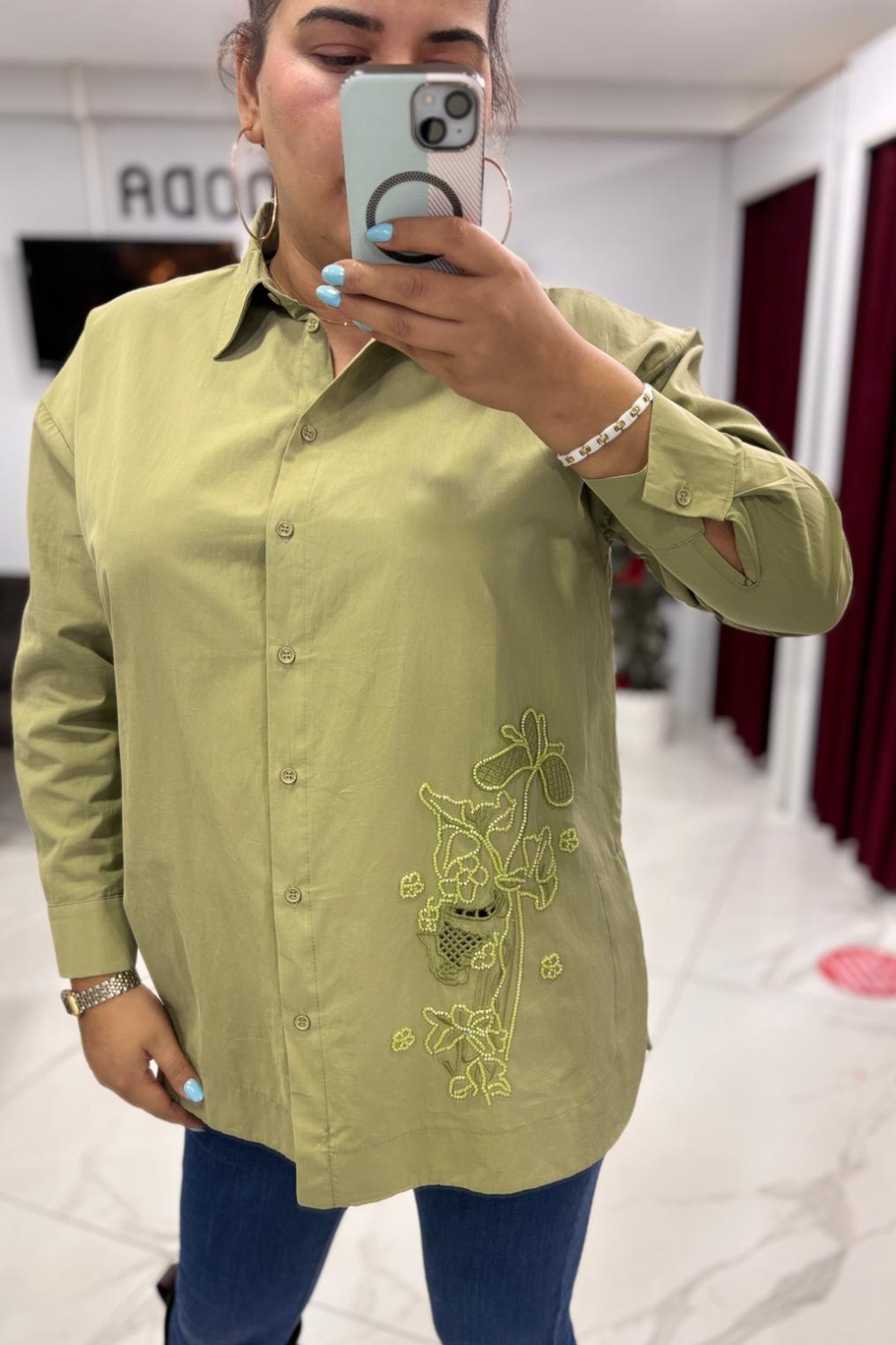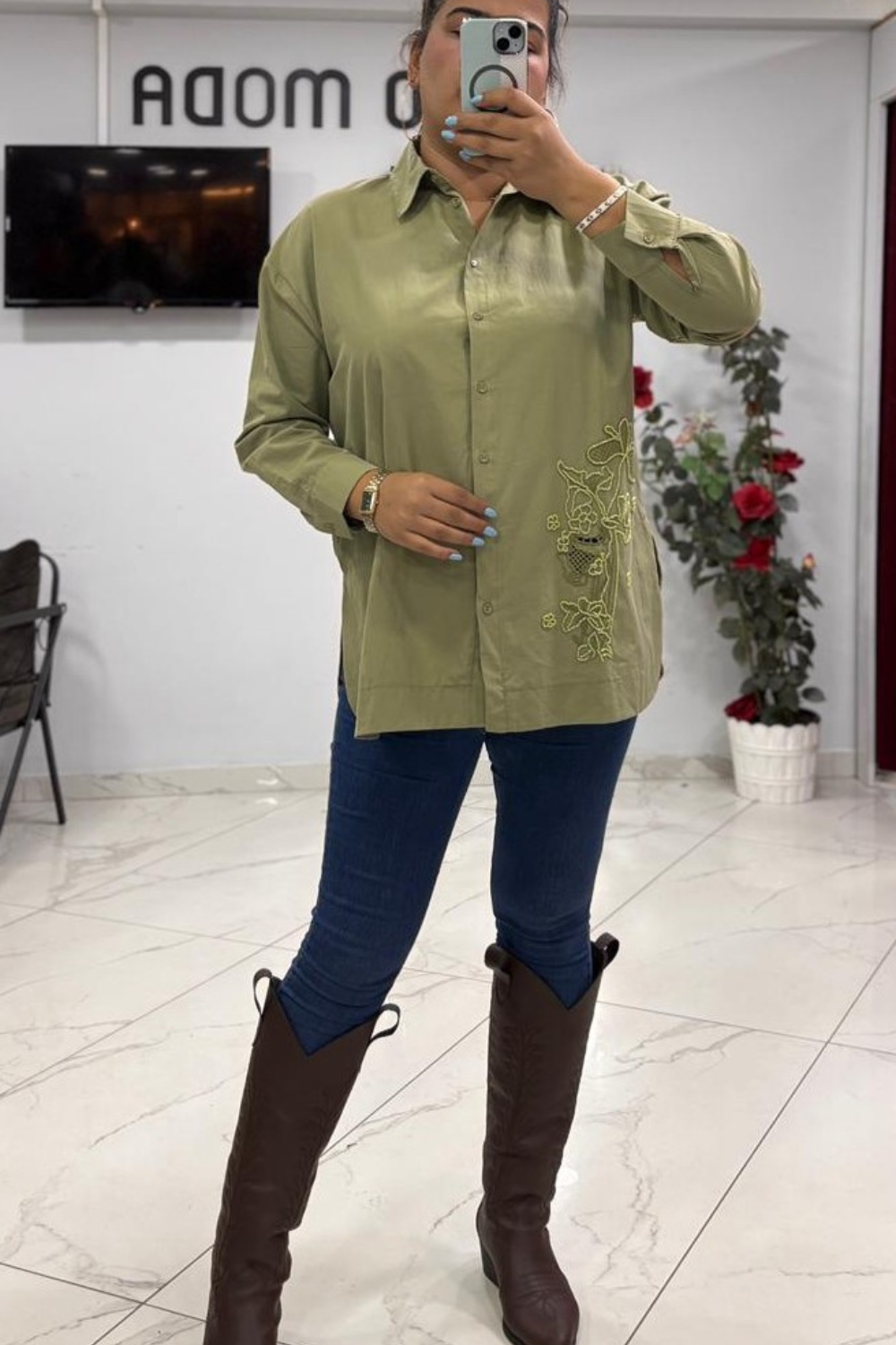 • Detay: Yan kısımda çiçek nakış işlemesi