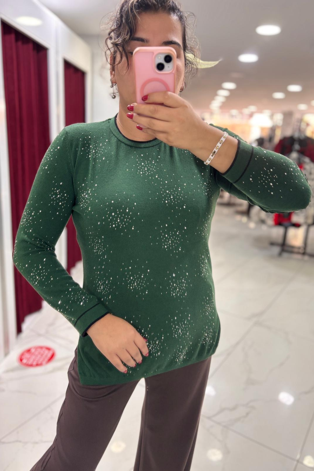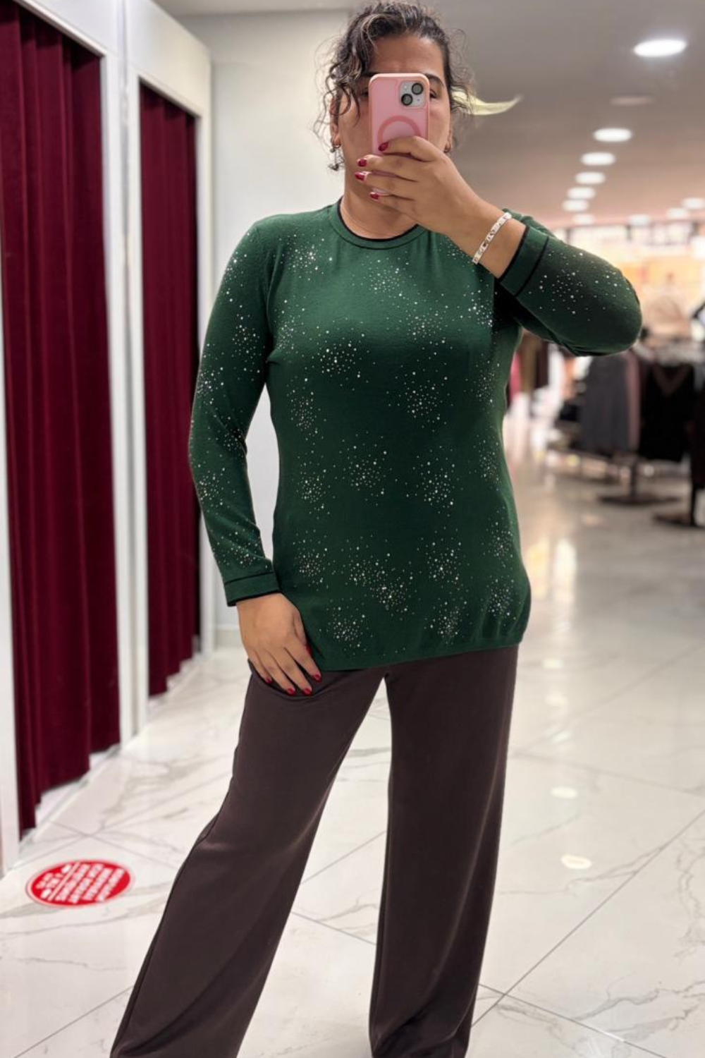 Zamansız zarafetin en ışıltılı hali… Egomoda Premium Angora Taşlı Kazak, angora dokusunun yumuşaklığıyla taş detaylarının ışıltısını bir araya getiriyor. Yeşilin derin tonuyla kusursuz bir uyum yakalayan bu model, hem konforlu hem de dikkat çekici bir stil sunar. Günlük kombinlerden özel davetlere kadar her ortamda premium bir duruş sağlar.