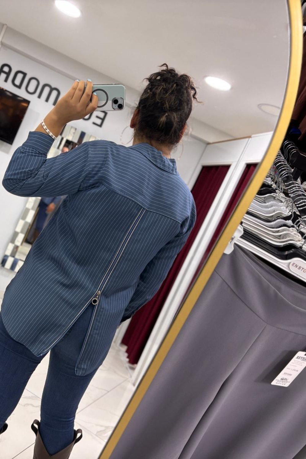 Detay: Fermuar ve aksesuar detaylı göğüs cebi