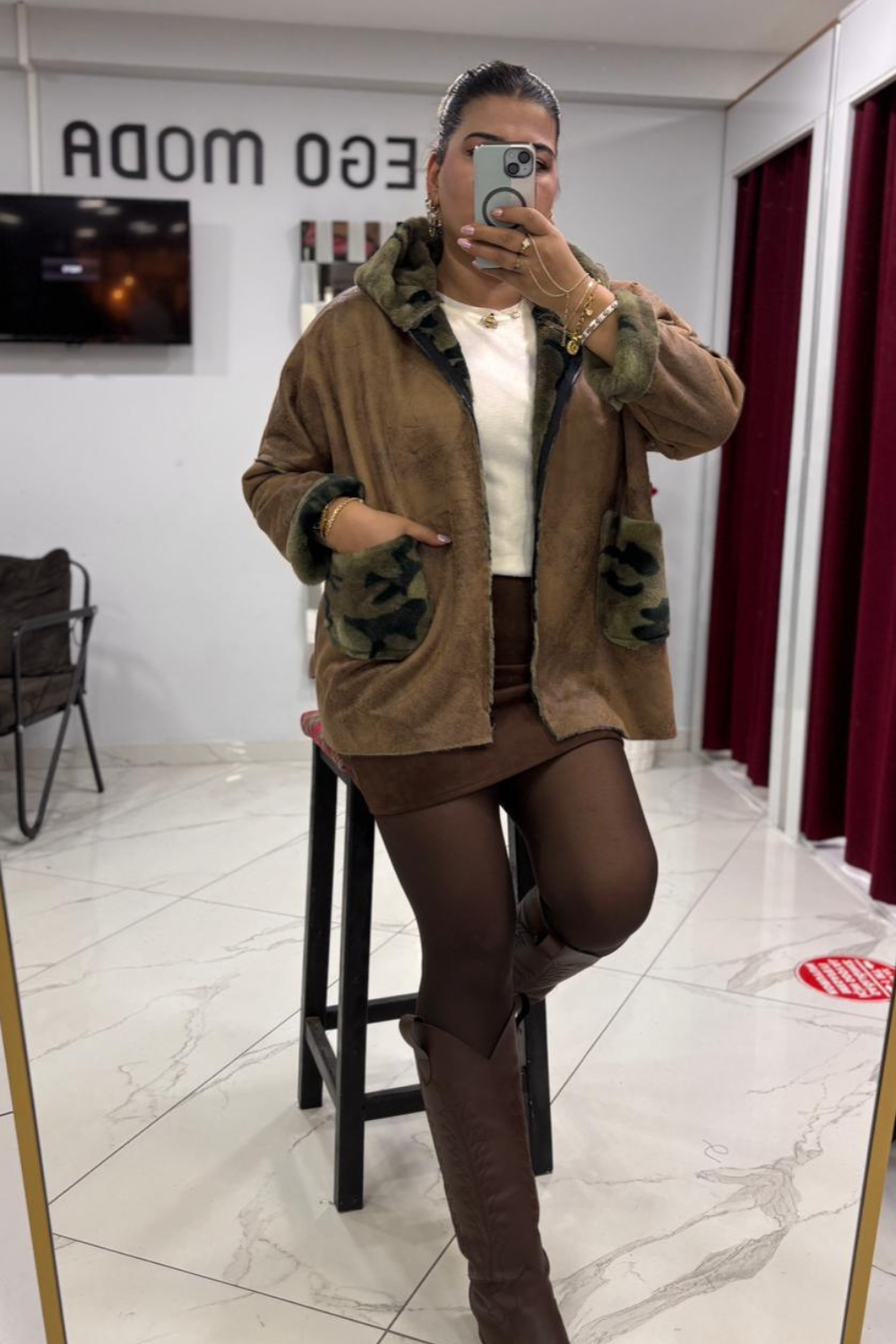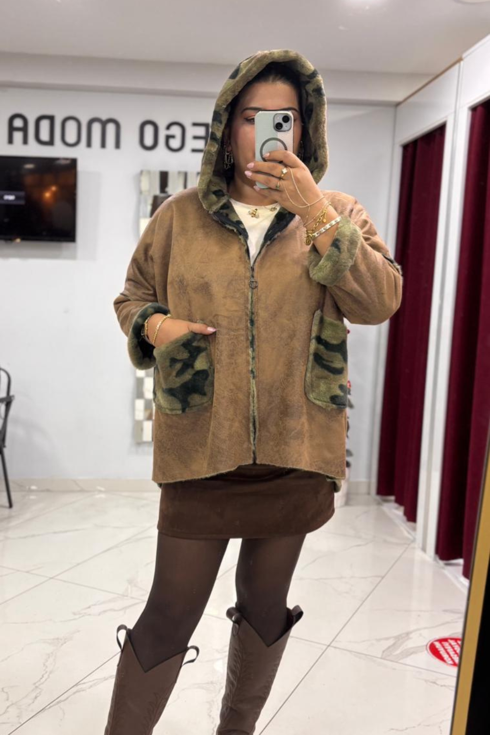 Yumuşak dokusu, oversize kesimi ve kamuflaj detaylı tasarımıyla konforu şıklıkla buluşturan bu parça, İtalyan modasının sıcak ve iddialı havasını yansıtıyor. Kapüşonlu formu, soğuk günlerde stilinizi tamamlarken zarif bir rahatlık sunar. 44–50 beden aralığına uyum sağlayan standart bedeniyle, hem günlük kombinlerde hem şehir şıklığında fark yaratmak isteyenler için mükemmel bir seçim.