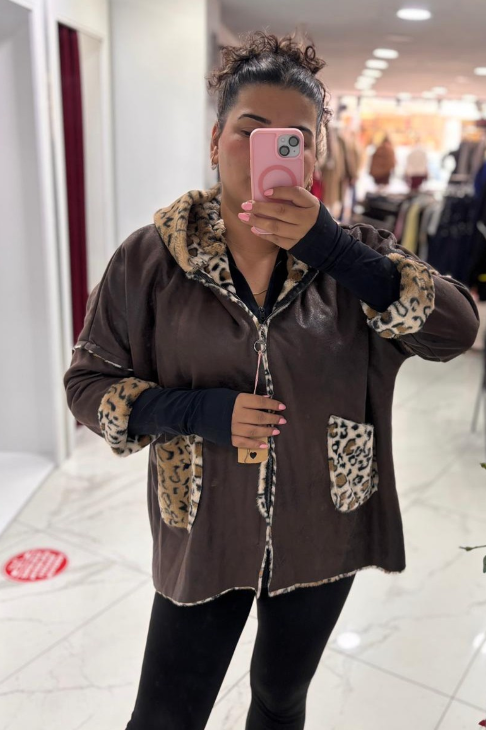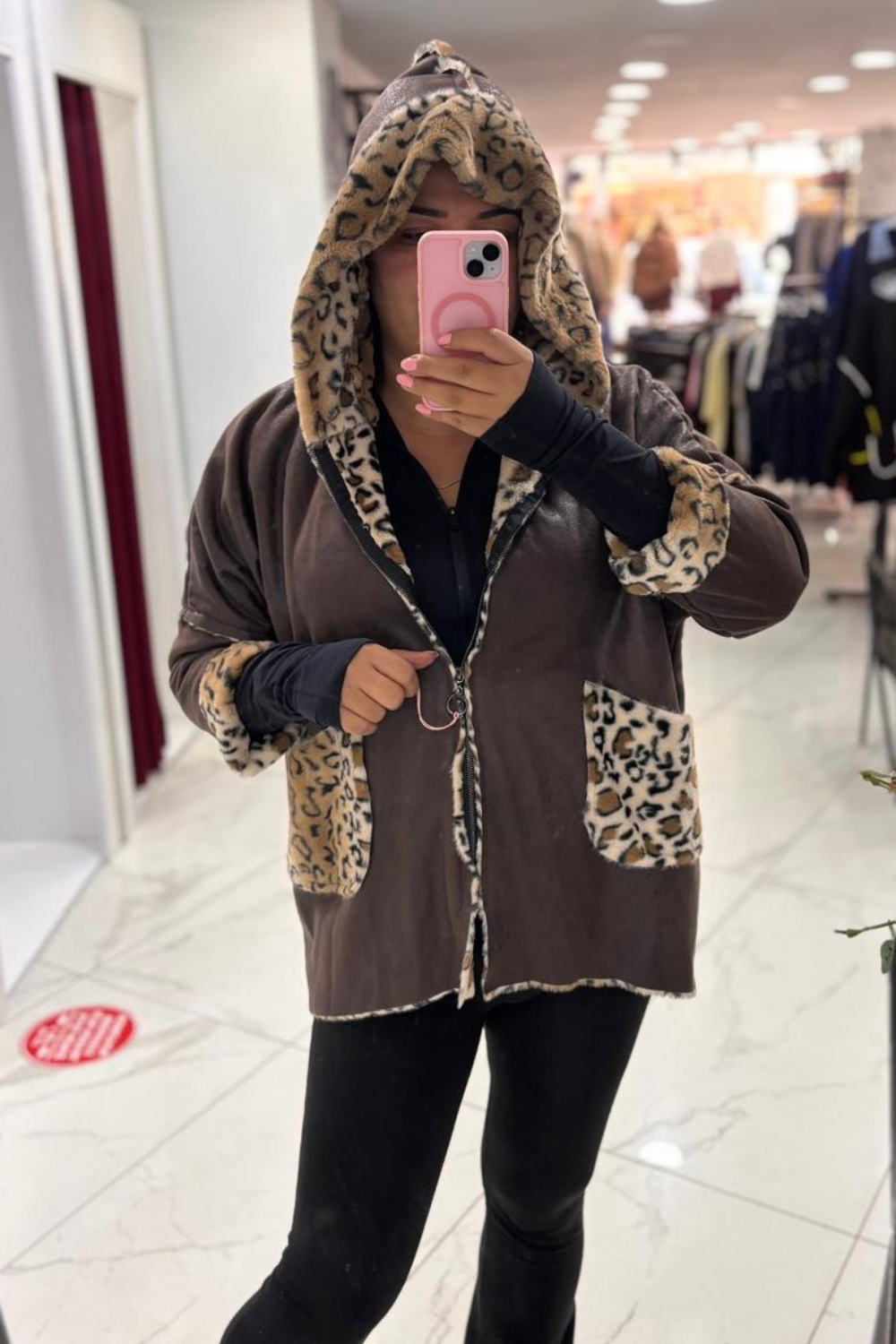 Yumuşak dokusu, oversize kesimi ve leopar detaylı tasarımıyla konforu şıklıkla buluşturan bu parça, İtalyan modasının sıcak ve iddialı havasını yansıtıyor. Kapüşonlu formu, soğuk günlerde stilinizi tamamlarken zarif bir rahatlık sunar. 44–50 beden aralığına uyum sağlayan standart bedeniyle, hem günlük kombinlerde hem şehir şıklığında fark yaratmak isteyenler için mükemmel bir seçim.