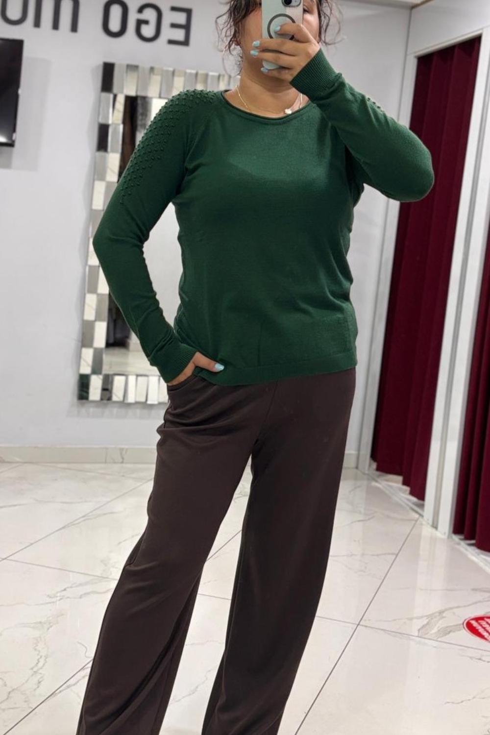 Detay: Omuz kısmında kabartma örgü detaylı tasarım
