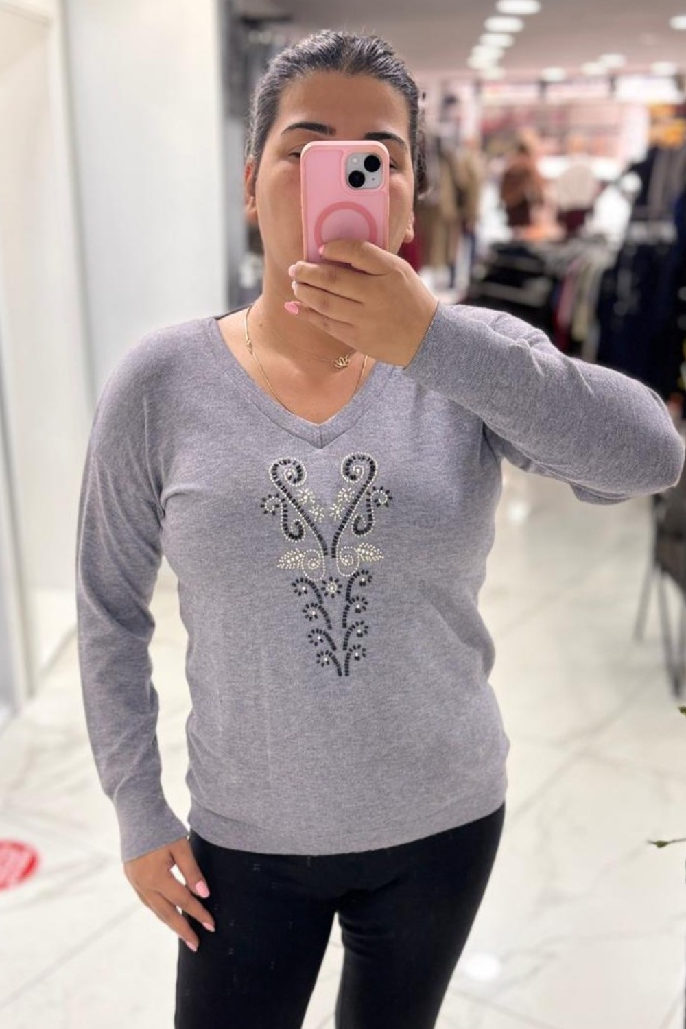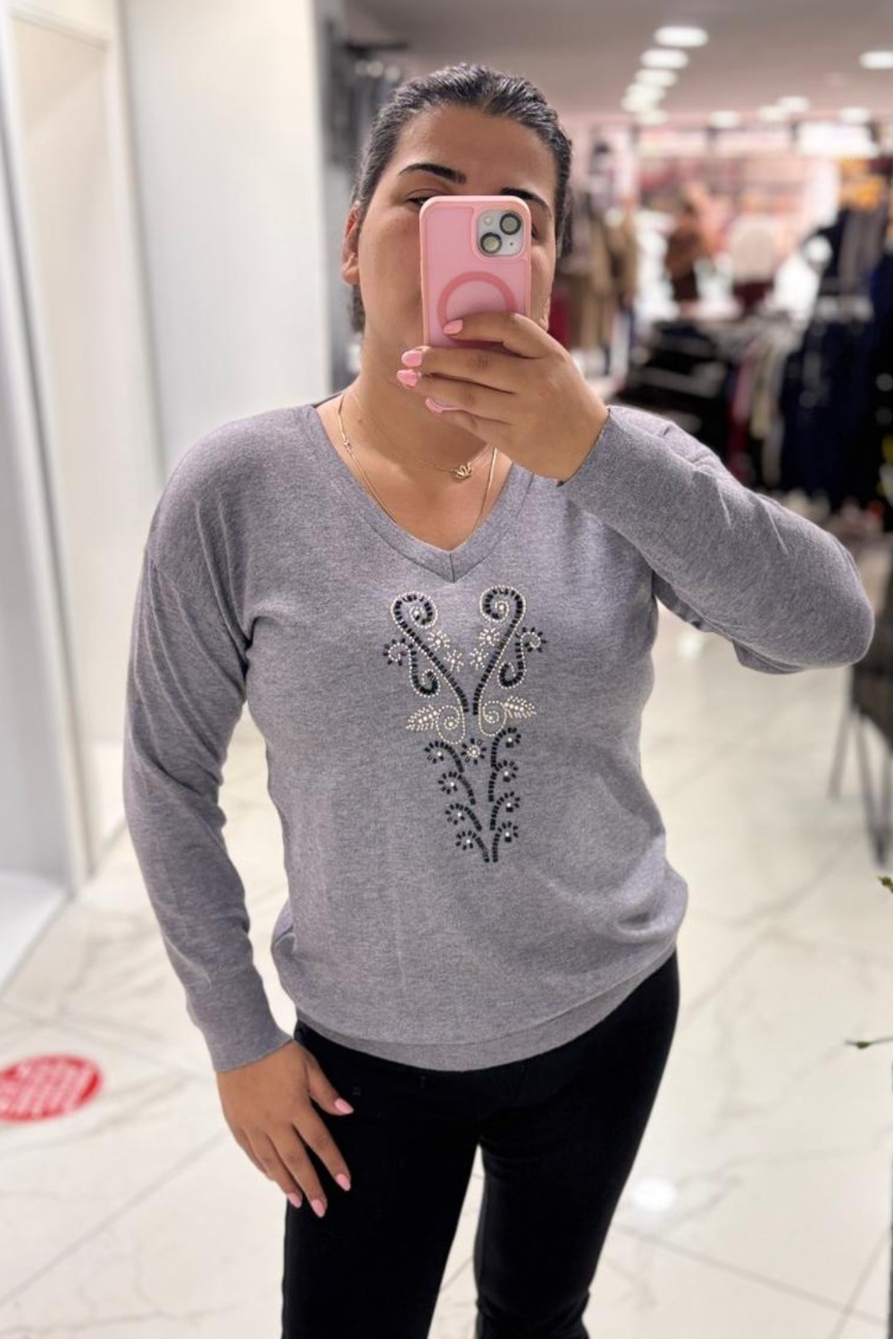 Detay: Ön kısımda parlak taş işlemeli zarif desen detayı